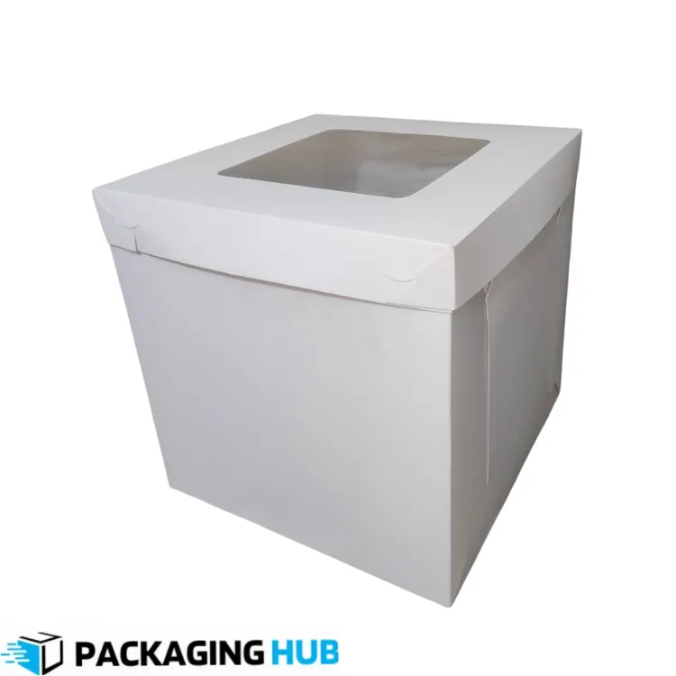 10x10x10 cake box with window from Packaging Hub is purpose-built for extra-tall and multi-layer cakes that require maximum height and stability. Made from food-grade, sturdy cardboard, this cake packaging box with window protects cakes from moisture, dust, and external pressure while maintaining freshness.